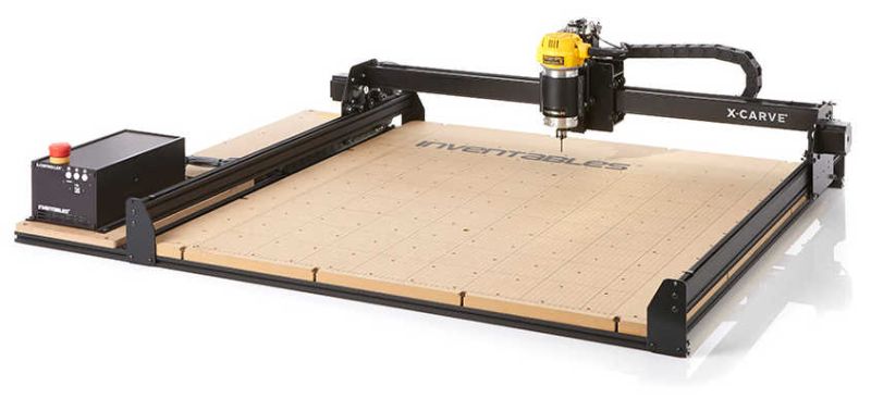La CNC Inventables permet de travailler sur une surface de 79 x 79 cm2. La table contient une grille d'écrous de fixation M5 avec un pas de 7.5 cm.